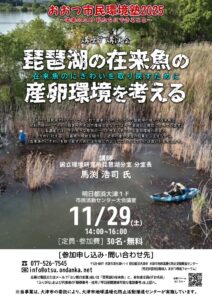 - 内容:「在来魚のにぎわいを取り戻すためにすべきことを考えます。」(講演会)