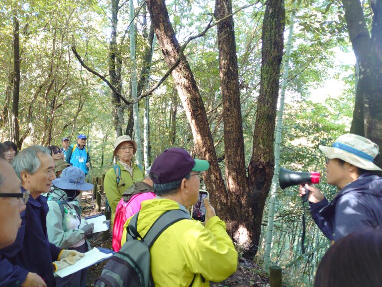 参加者の皆さんは、「実際に歩きながらの説明がわかりやすかった」「樹木の変遷の話が勉強になった」と大好評で、熱心にメモを取ったり写真を撮ったりと、とても意欲的で楽しんでいらっしゃいました 。